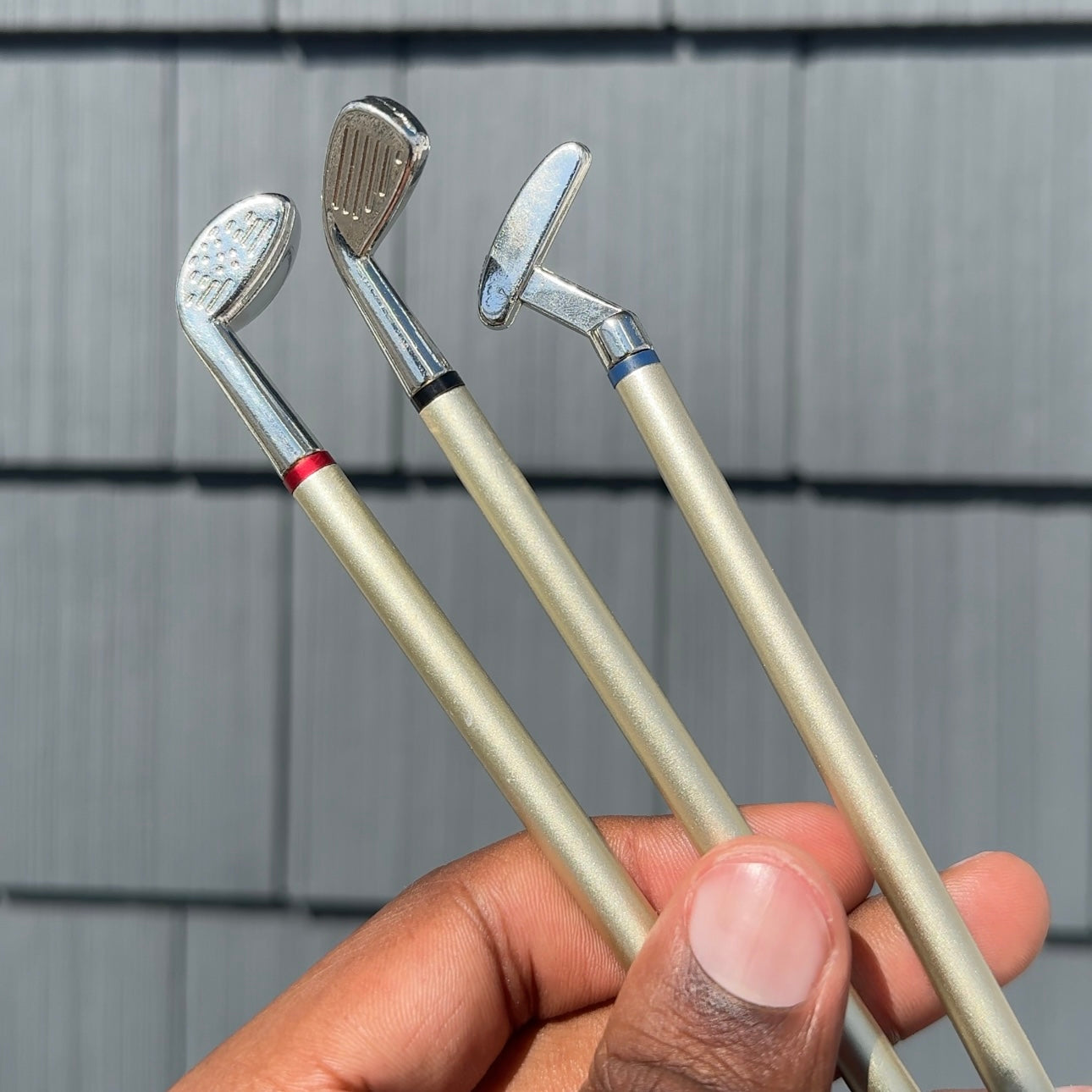 Whether you're at home, work, or on the course Pocket Putter is ready for the occasion. Equipped with a weighted, putter, wedge, and driver pen you'll be prepared for the green.